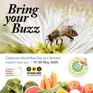 The Australian Farmers’ Markets Association (AFMA) is pleased to again partner with the Wheen Bee Foundation to celebrate World Bee Day 2025 and the annual Bring Your Buzz campaign to raise awareness of the fundamental role bees play in our vital food chain. We Need Bees!